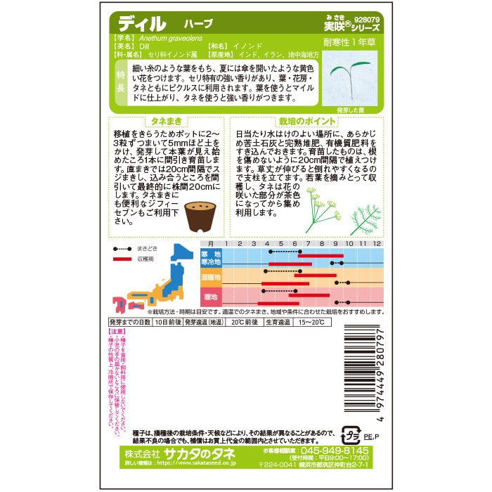 細い糸のような葉を持ち、夏には傘を開いたような黄色い花を付けます。セリ特有の強い香りがあり、葉・花房・タネともにピクルスに利用されます。葉を使うとマイルドに仕上がり、タネを使うと強い香りがつきます。
