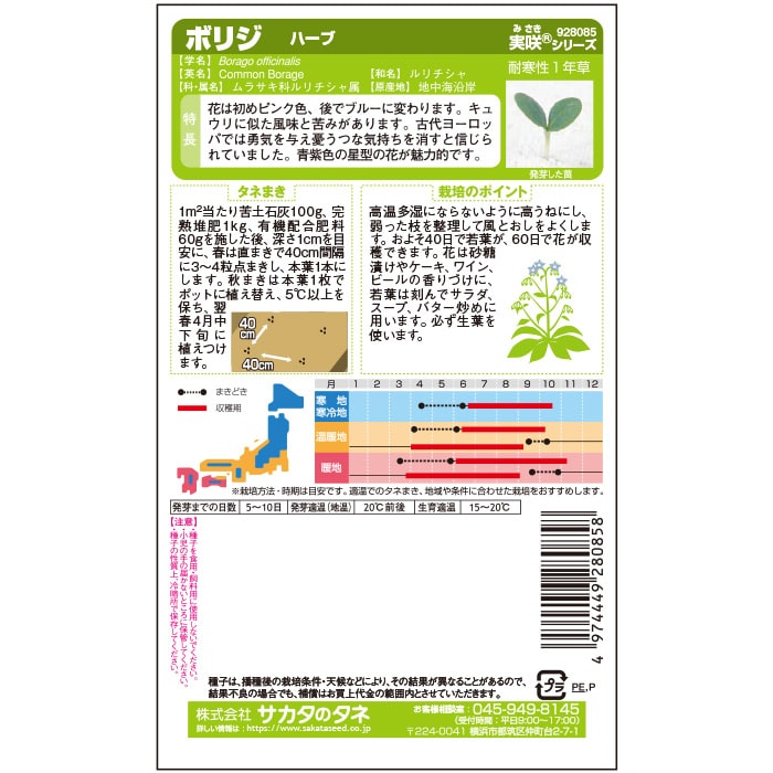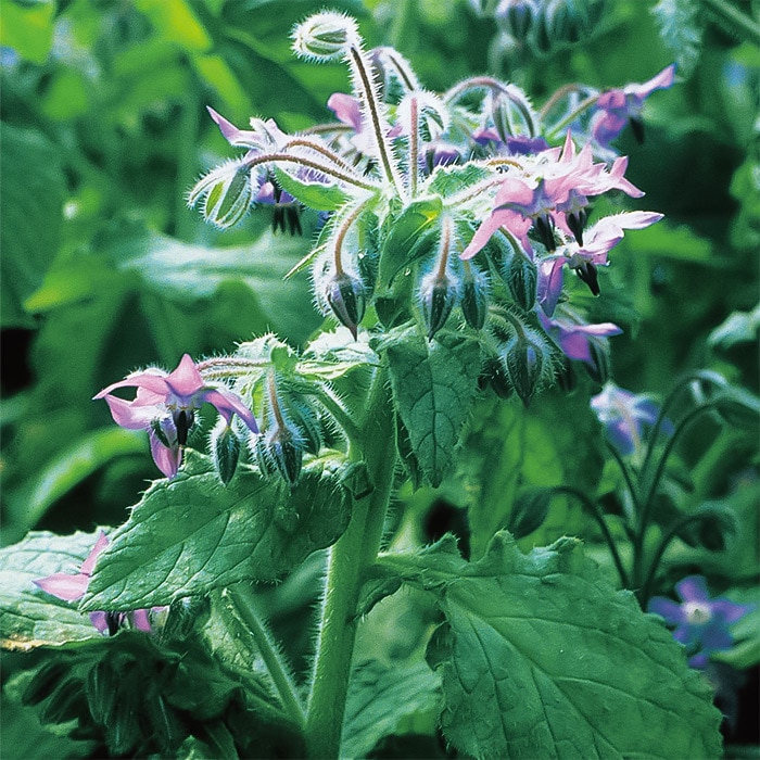 花ははじめピンク色で、後でブルーに変わります。キュウリに似た風味と苦味があります。