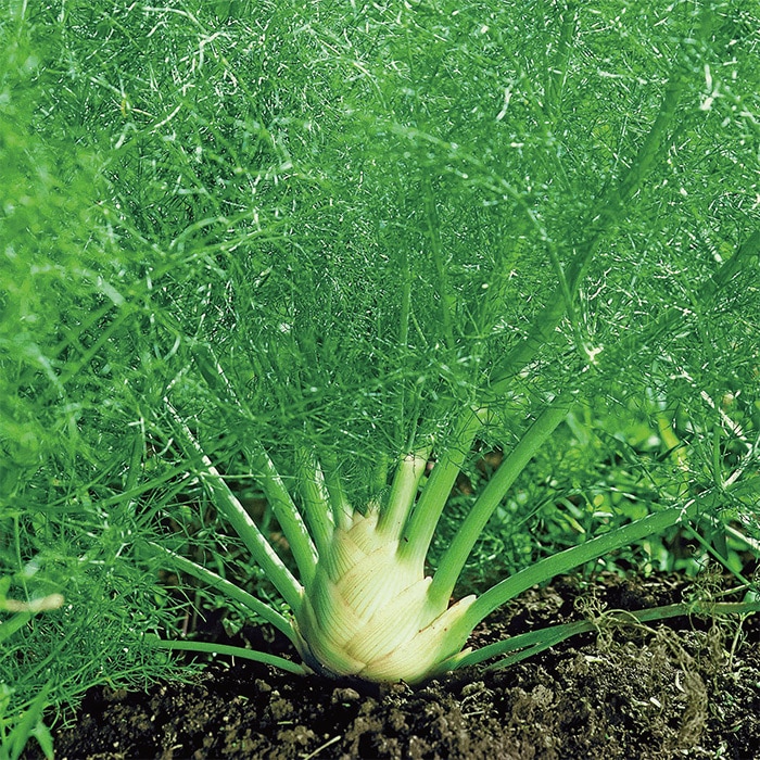 株元が肥大するフローレンスフェンネルです。「魚のハーブ」と呼ばれ魚介類を使った料理との相性がよく、世界中で利用されています。葉は風味づけ、肥大した株元はサラダ、タネは薬味・ハーブティー・菓子に利用できます。