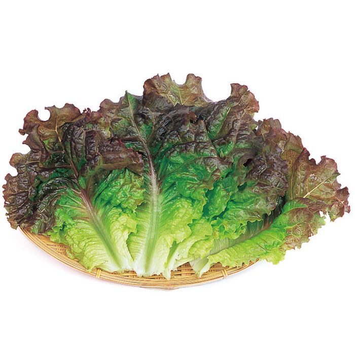 赤葉で彩りよく、ほろ苦さとシャキッとした歯応えは、焼き肉などを巻いて食べるのにぴったりです。