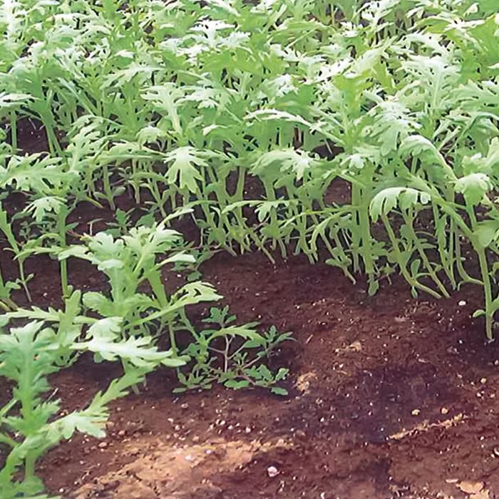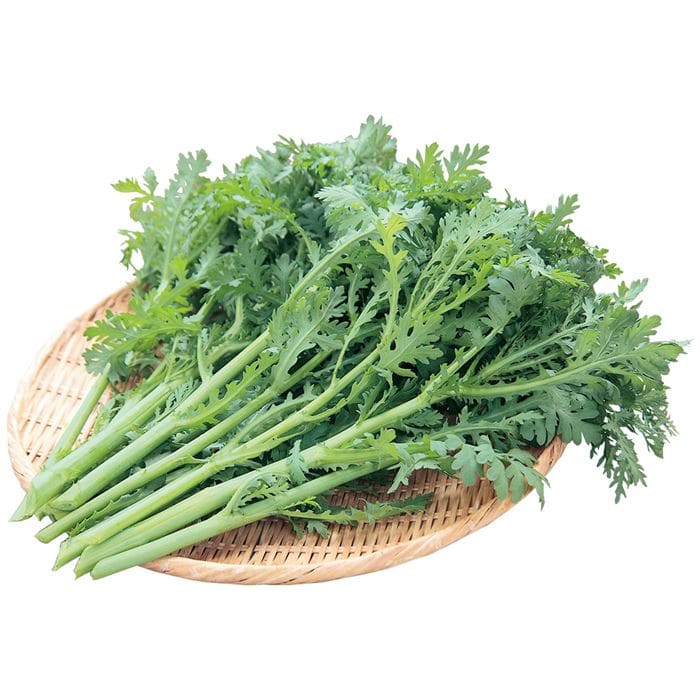 葉の刻みは小型で細かく、淡緑色で真っすぐに伸びます。草丈15~20cmほどで基部より収穫します。香りが少なく、シュンギクの苦手な方でもOKです。特にサラダにすると茎がシャキシャキして食感がよく、甘みもありおいしくいただけます。収穫期間の幅が短いのでタネまきをずらして栽培するのがおすすめです。