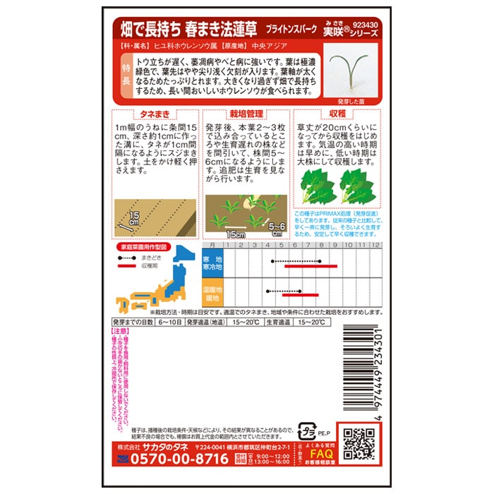ホウレンソウ ブライトンスパーク 絵袋(小袋)見本