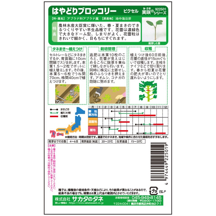 - キャベツ 藍天(約85粒)、小ネギ 緑秀(約2500粒)、ミニハクサイ タイニーシュシュ(約300粒)、ブロッコリー ピクセル(約100粒)、レタス リバーグリーン(約200粒)、カリフラワー 美星(R)(約100粒)各1袋