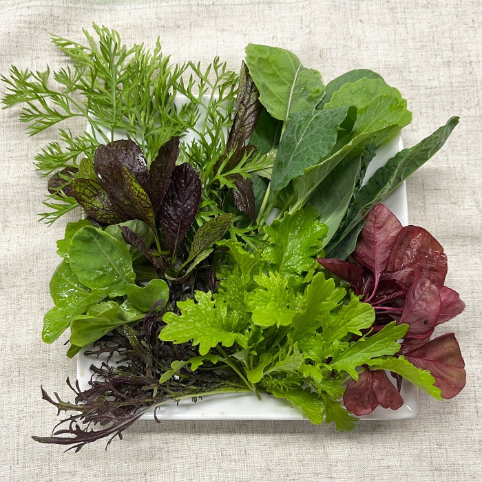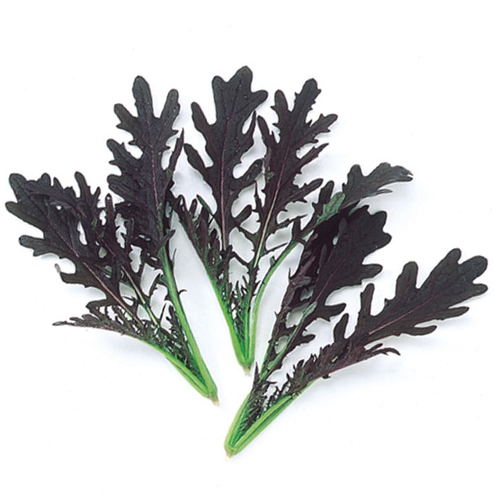 赤紫色の発色がよい切れ葉の水菜です。生育が旺盛でグリーンからし水菜と生育がそろいやすいです。
