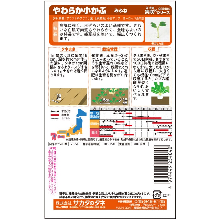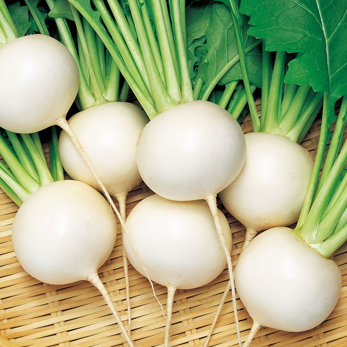 病気に強く、生育旺盛で生育のそろいがよい品種です。肌はきれいでテリがあり、肉質は柔らかくおいしいカブです。