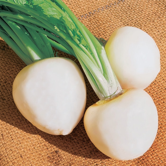 肉質が柔らかく甘みがあり、漬物やサラダに合います。尻づまりがよいため、小カブからでも収穫でき、中サイズまで収穫できます。