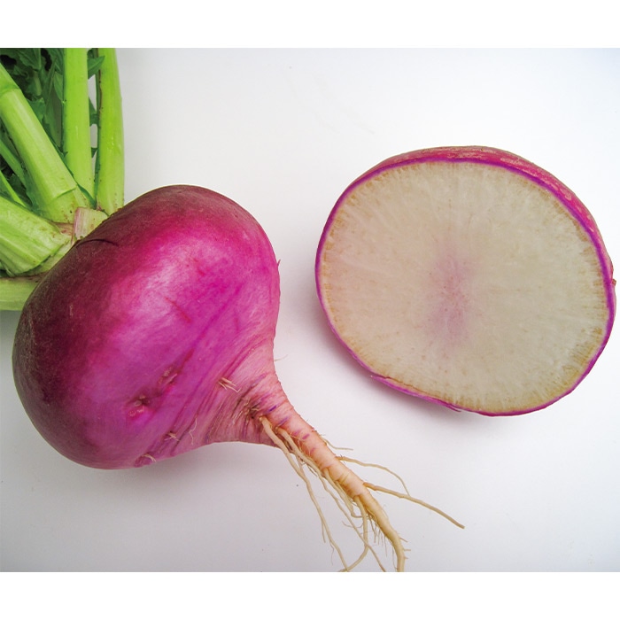 耐寒性・耐雪性に優れ、作りやすい品種です。葉は濃緑色、茎・根は赤紫色を帯びています。緻密な肉質で甘みが強いので、漬物におすすめです。