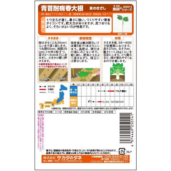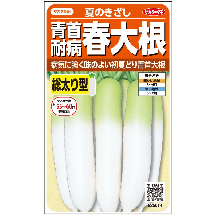 とう立ちが遅く、暑さや病気に強い、作りやすい青首ダイコン。肥大力がありますが、尻づまりよく、そろいのよさも魅力。初心者にもおすすめです。