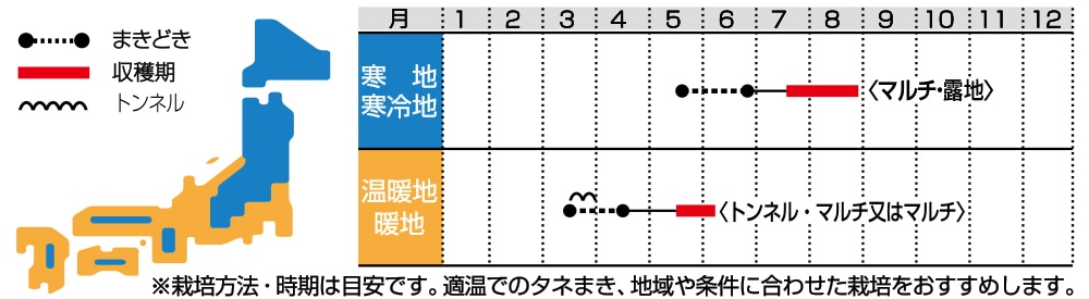 ※早まきして強い寒さに当たると、とう立ちする場合があります。