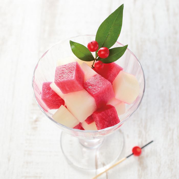 鮮やかな紅色を生かした大根おろしやサラダだけでなく、一夜漬け、浅漬けにもぴったりです。