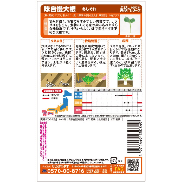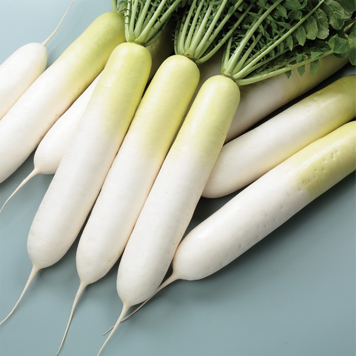 緻密でみずみずしい肉質。シャキシャキ感を生かして生食はもちろん、煮物にしても味が染み込みやすく、どんな料理にもよく合います。そろいもよく、初めてでも作りやすく、在圃性に優れるため、収穫適期が長いです。