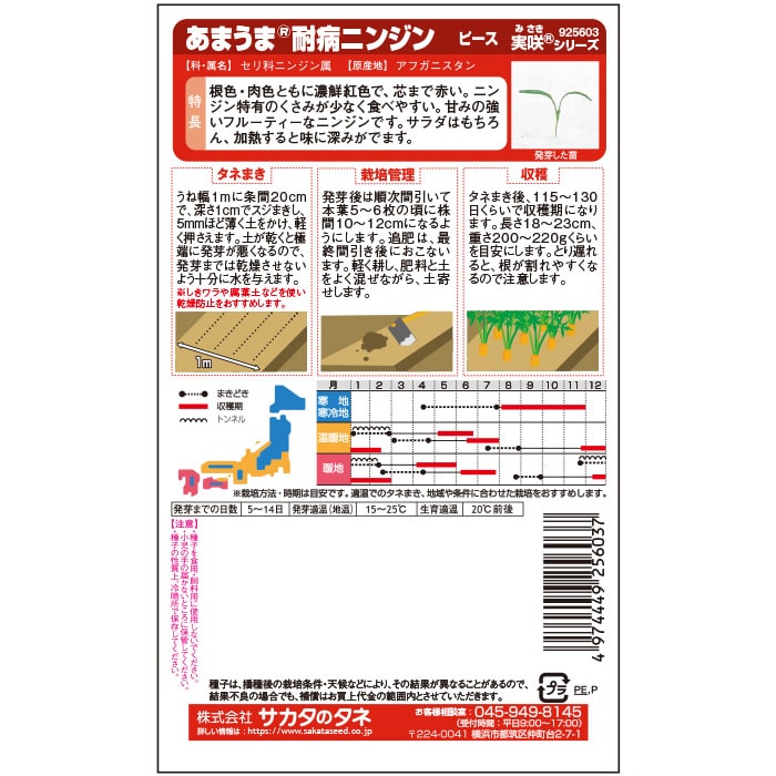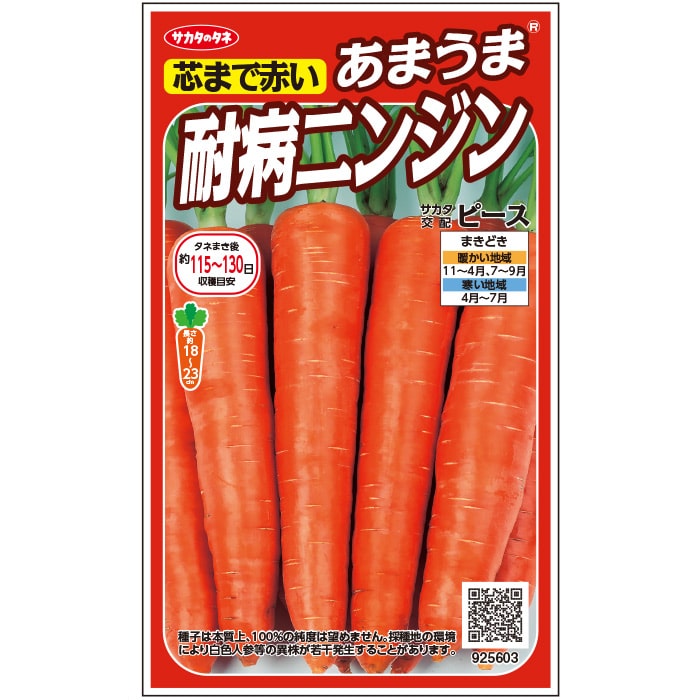 ※種子は本質上、100%純度は望めません。採種地の環境により白色ニンジンなどの異株が若干発生することがあります。