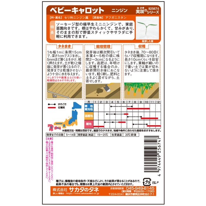 ※種子は本質上、100%純度は望めません。採種地の環境により白色ニンジンなどの異株が若干発生することがあります。