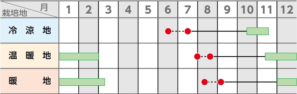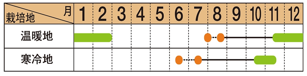 夏まき秋冬どり用の中早生種で、病気に強く、草勢が強くしっかり育ちます。大きさはそろいやすく、色のきれいな高品質なニンジンが収穫できます。気温が低いときは長い期間畑に置いておけるので、好きなときに収穫できます。