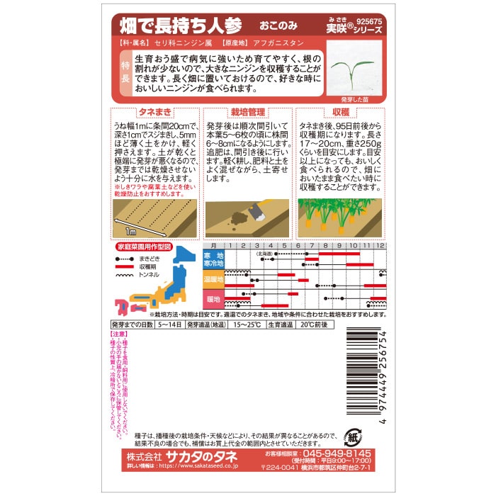 ※種子は本質上、100%純度は望めません。採種地の環境により白色ニンジンなどの異株が若干発生することがあります。