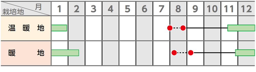 夏まき秋冬どり用の中早生種。初期生育が早く、発芽後の管理がしやすく、病気や寒さに強いです。中早生の性質を持ちながら、在圃性もあり年内~年明けまで収穫できます。