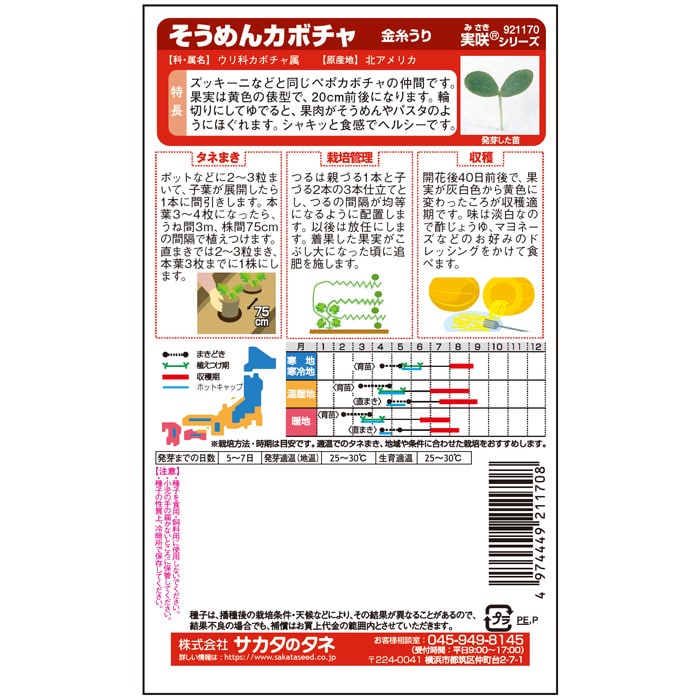 黄色で俵形の20cm前後のカボチャがたくさん収穫できます。クセのない淡泊な食味は、どんな調味料とも相性がよく美味です。
