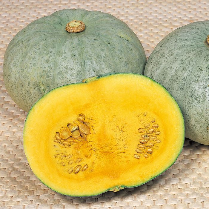 草勢強く、低温伸長性に優れます。「雪化粧」と比較して着果が早くから始まり、成熟日数は開花後50日前後の中晩生品種。果実は2kg前後の扁円形大玉。果皮は「雪化粧」と同じ白色で、淡灰色の斑点が入り、果肉は淡い黄色。収穫直後は極粉質で甘みに乏しいため、1か月程度の貯蔵期間をおいてからの消費が好ましいです。貯蔵を経ることで甘みが増して食味が最高になります。