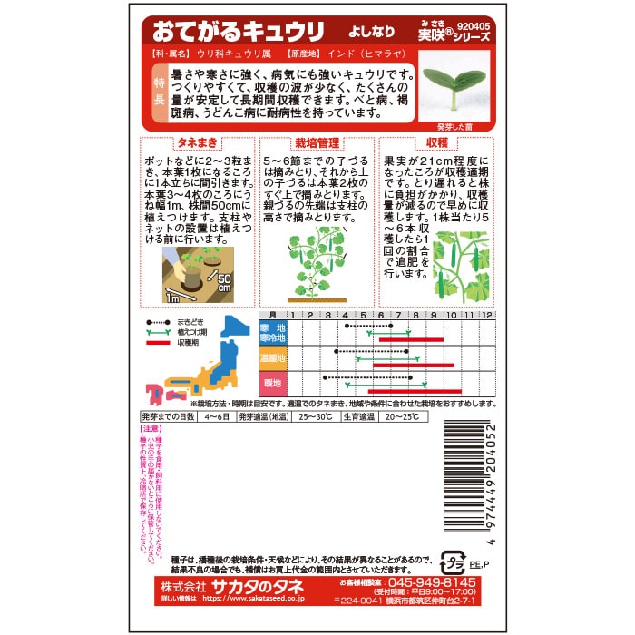 白いぼタイプ。べと病、うどんこ病という二大病害に極めて強い品種。育てやすいので、初めての方にもおすすめです。歯切れのよい、おいしいキュウリができます。