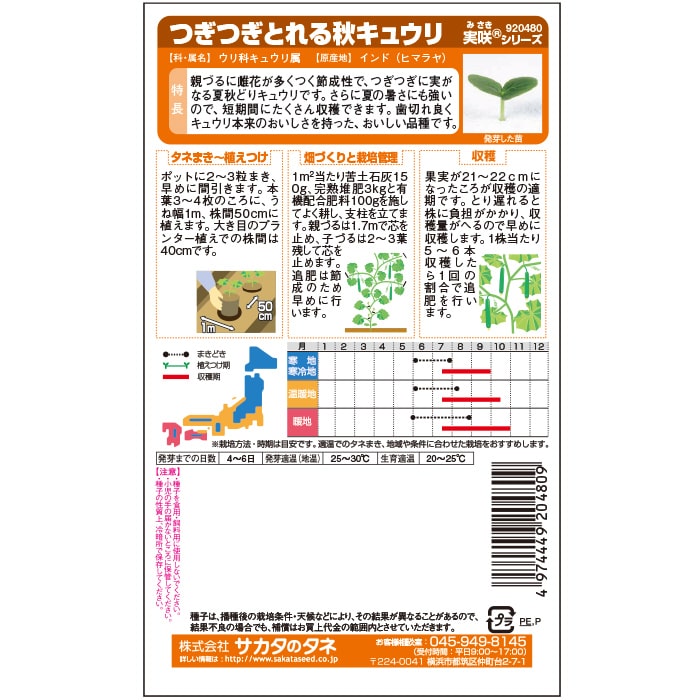 親づるに雌花が多く付く節なり性で、次々に実がなる夏秋どりキュウリです。さらに夏の暑さにも強いので、短期間にたくさん収穫できます。歯切れよくキュウリ本来のおいしさを持った、おいしい品種です。