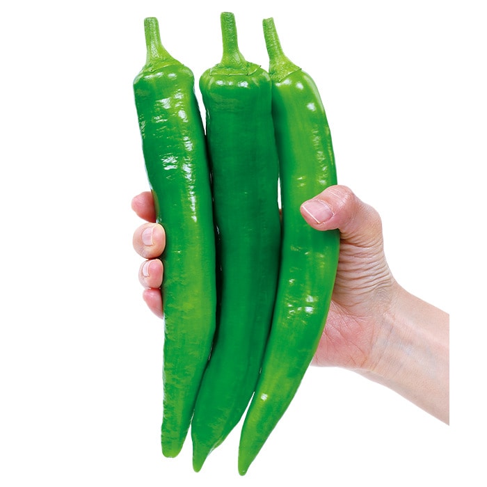 手のひらサイズのジャンボトウガラシです。炒め物などで大変おいしく食べられます。