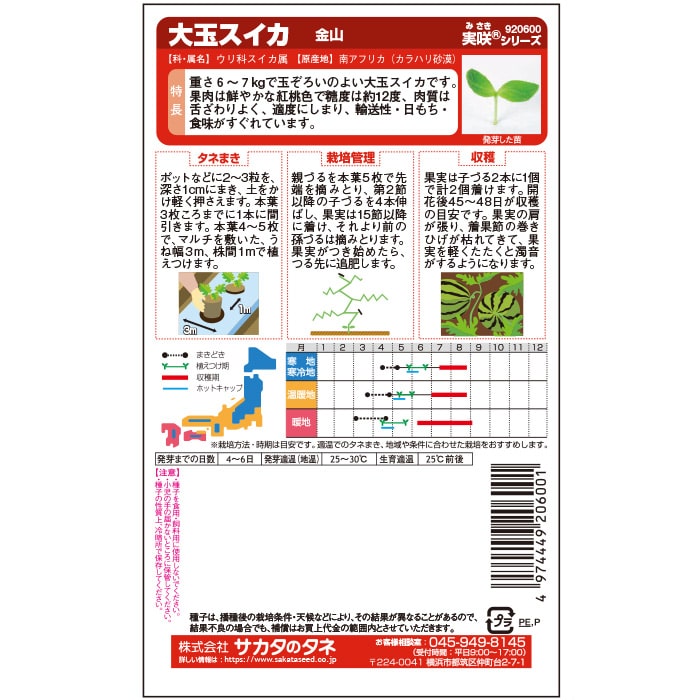 栽培のコツ●スイカは高い気温を好む野菜なので、発芽から育苗期にかけては保温します。