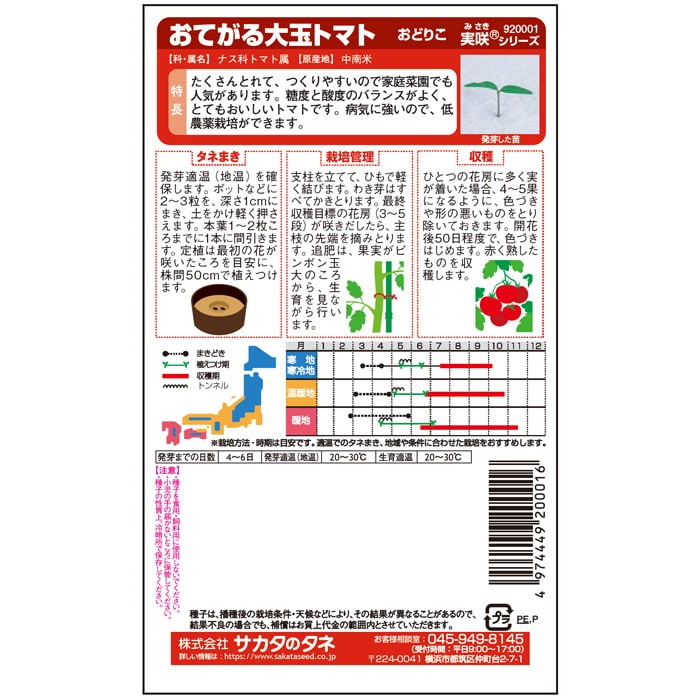 育てやすく、高品質なトマトがたくさん収穫できます。トマト本来の程よい酸味があります。赤く熟してから収穫でき、家庭菜園にもぴったりの品種。