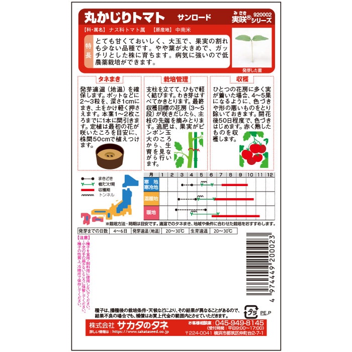 萎ちょう病、青枯病、葉かび病など、トマトの要注意病害に強い大玉種。甘みが強く、低農薬栽培が可能で、家庭菜園にもおすすめの品種です。