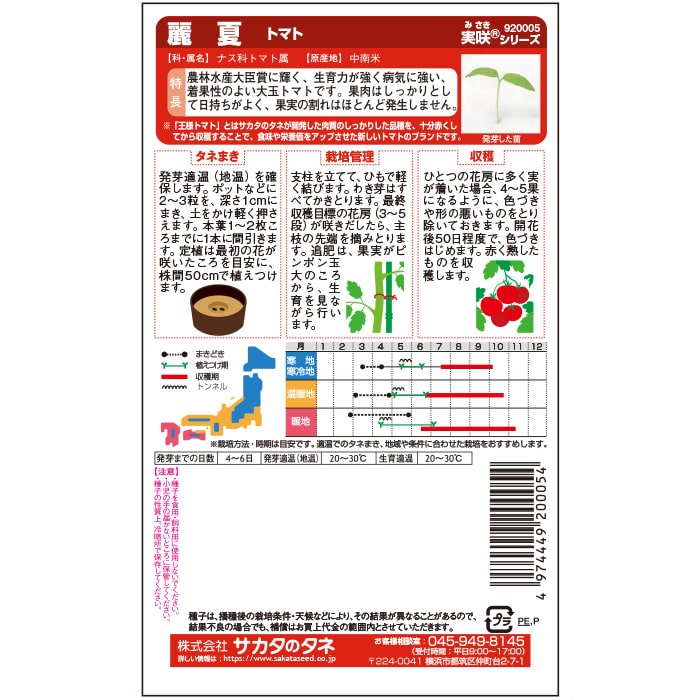 日持ちがよく、裂果の発生が少ないので、真っ赤に熟したおいしいトマトを収穫できます。病気に強く、株も疲れ知らずなので露地栽培にぴったりです。