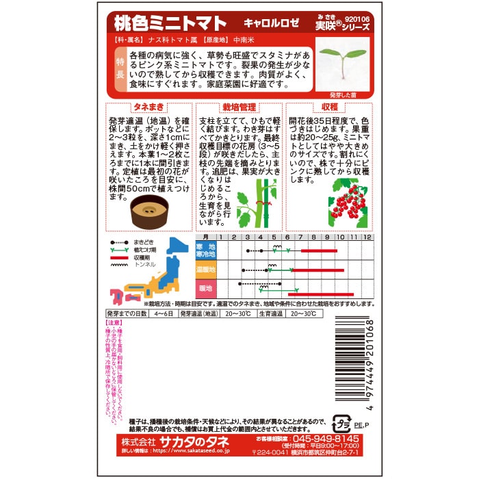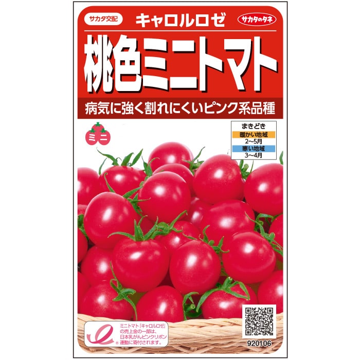 病気に強く、草勢も旺盛な、スタミナのあるピンク色系ミニトマトです。肉質がしっかりしているので日持ちがよく、裂果も少ないので完熟果を収穫できます。