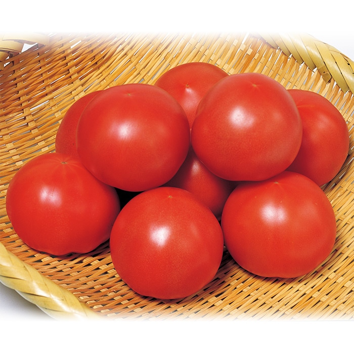 高温下での着果性が優れ、食味のよい耐病性大玉トマト。空洞果、スジ腐れ果の発生が少なく、秀品率が高いです。萎凋病、半身萎凋病、葉かび病、斑点病に抵抗性でネマトーダに耐虫性があります。