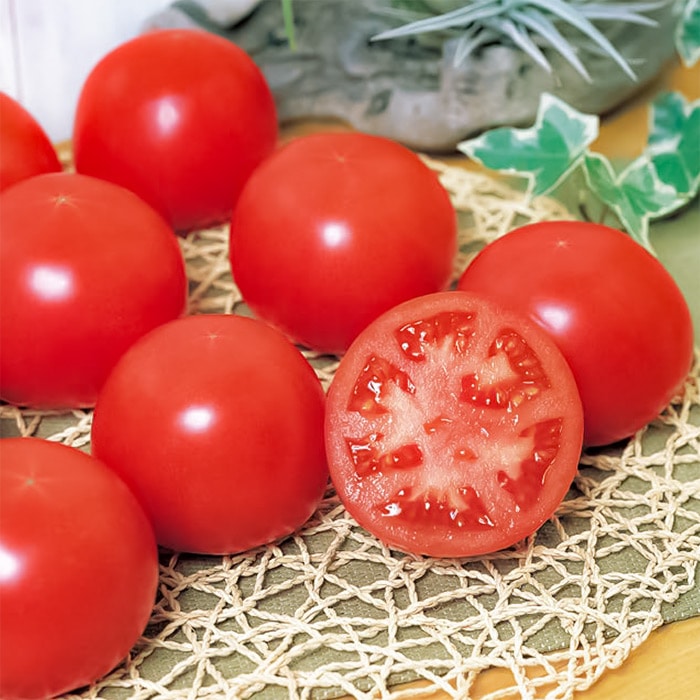 王様トマトシリーズ。黄化葉巻病耐病性をもち、極硬玉のため栽培後半でも軟化玉になりにくい特徴があります。