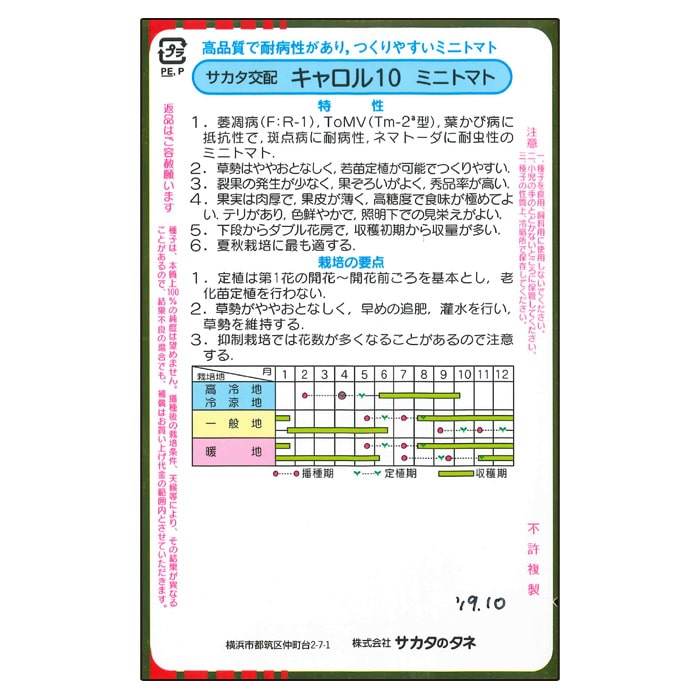草勢はややおとなしく、下段からダブルで花房が付きやすく、栽培初期にたくさんとれます。果実は肉厚で食べ応えがあり、高糖度でおいしいミニトマトです。果実にテリがあり見た目もよい特徴があります。