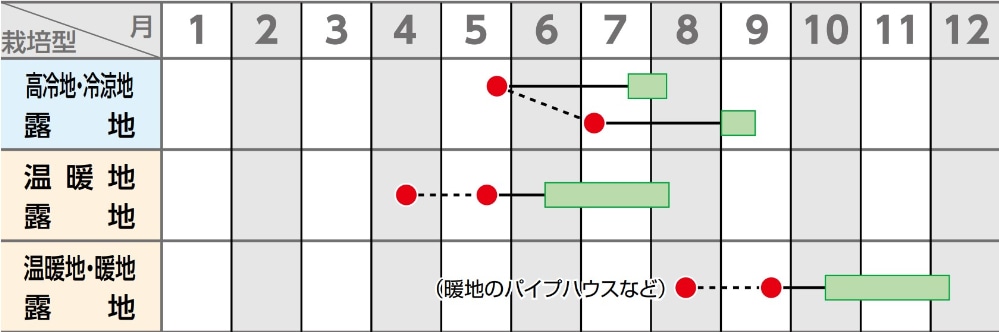 すらりとした濃い緑色の丸莢で、莢長12~13cmで収穫します。そろいが非常によい中生種で、草勢が強く作りやすい品種です。