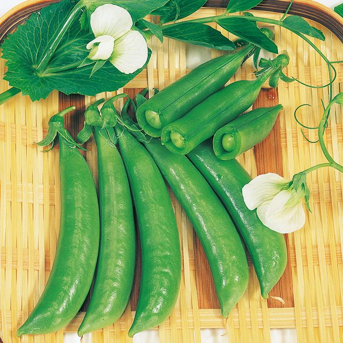 強い甘みが特長。グリーンピースのように太ったマメは柔らかく、みずみずしい莢はサクサクとした食感です。