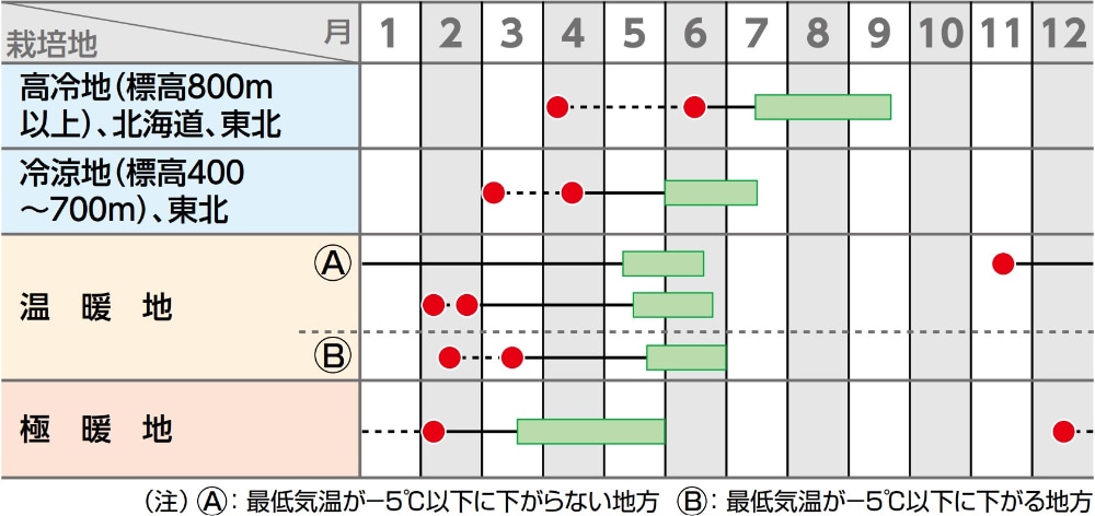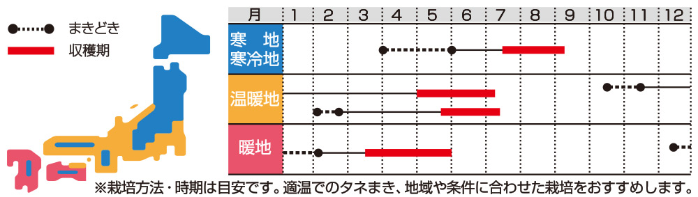 ※寒い時期のタネまきは低温により発芽不良の恐れがあるため、室内でタネまきするなど、十分に温度を確保してください。