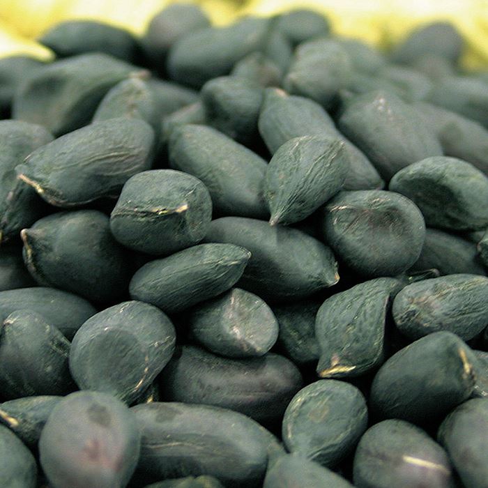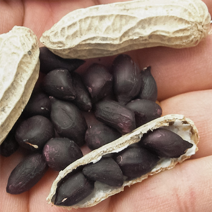 莢の外見は薄茶色で2~4粒の子実が入ります。子実の薄皮は黒色に近い濃紫色になります。