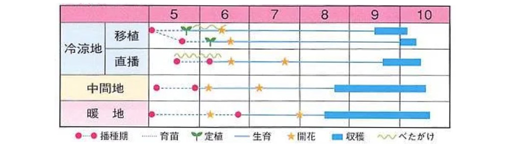 千葉半立ちよりもやや早生の品種です。莢の外観がきれいでたくさん収穫できます。