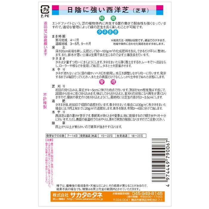西洋芝 みどりの芝生シリーズ 日陰に強い