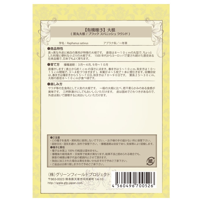 有機種子 黒丸大根 ブラックスパニッシュラウンド