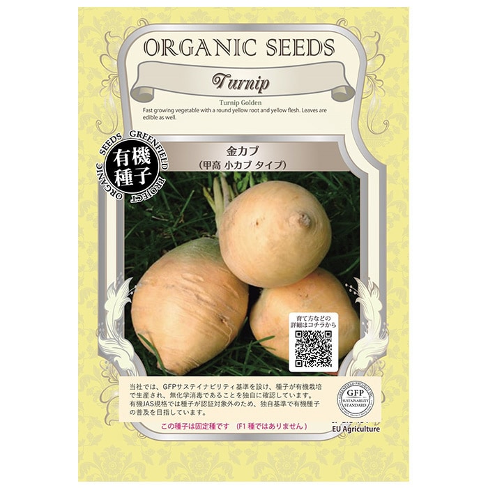 黄金色が美しい。漬物、煮物、炒めものに。甲高な形で収穫サイズは5~8cmです。