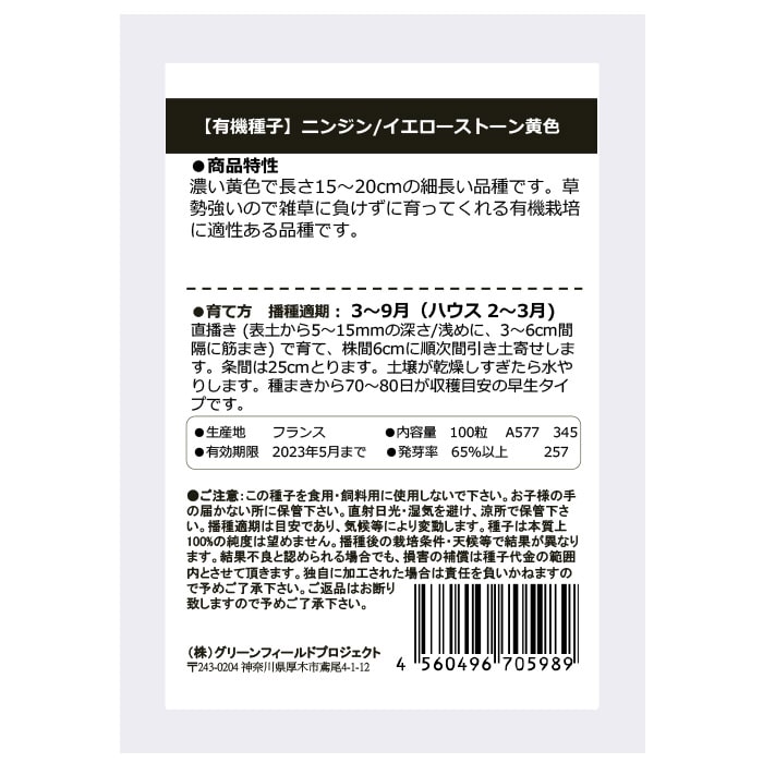 有機種子 ニンジン イエローストーン