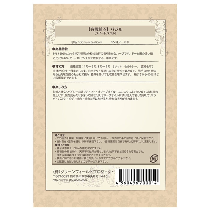 化学農薬・化学肥料なし、化学種子消毒なし、遺伝子組み換えなしの有機種子です。