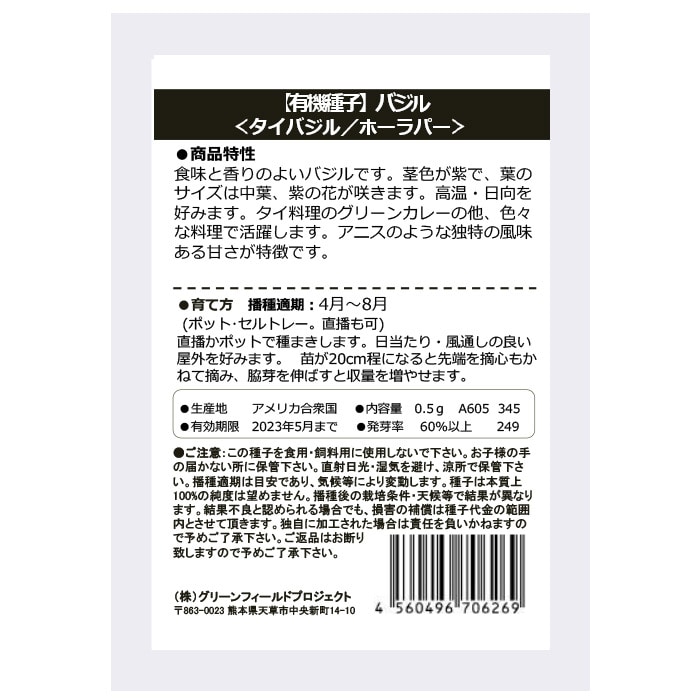 化学農薬・化学肥料なし、化学種子消毒なし、遺伝子組み換えなしの有機種子です。