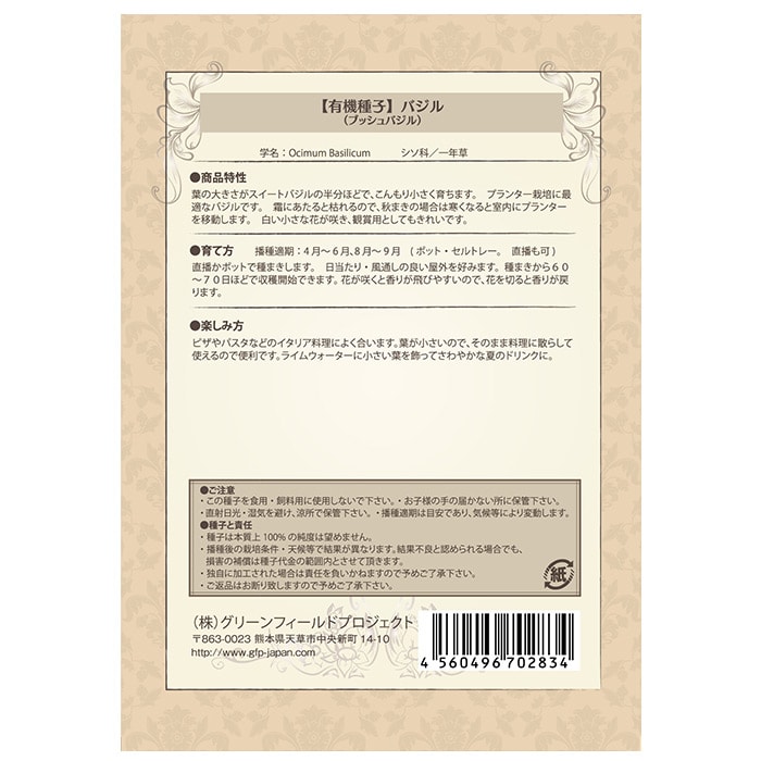 化学農薬・化学肥料なし、化学種子消毒なし、遺伝子組み換えなしの有機種子です。