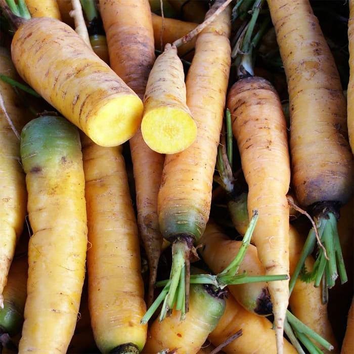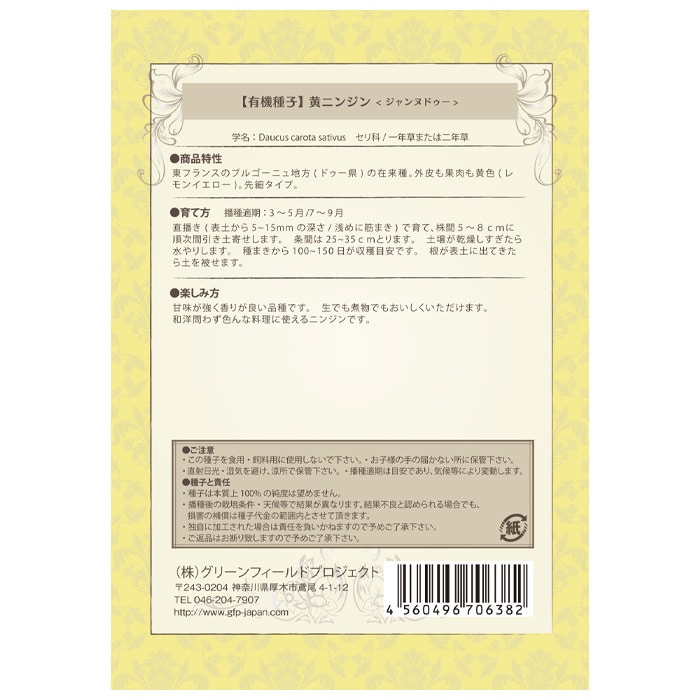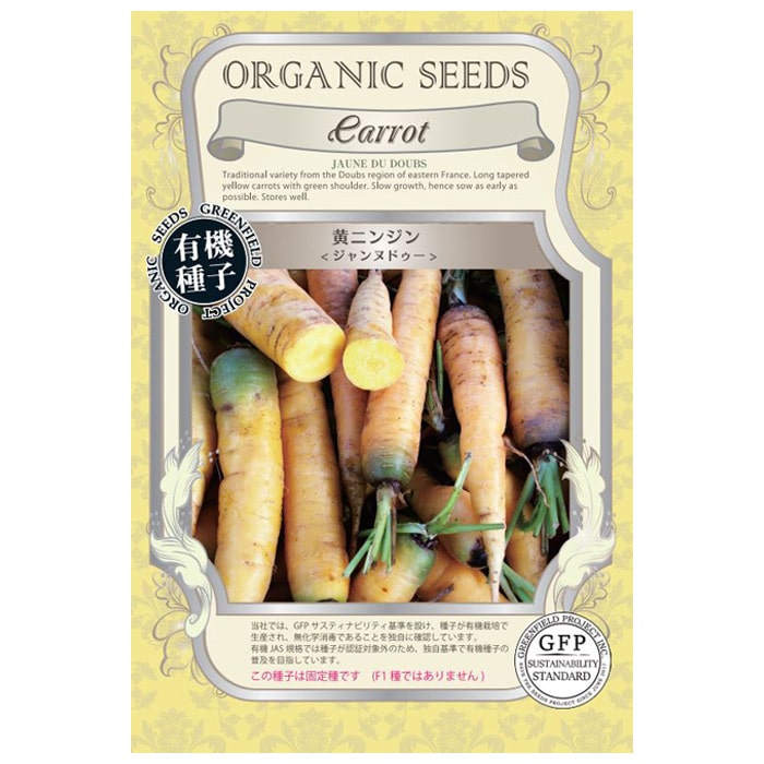 フランスのブルゴーニュ地方(ドゥー県)の在来種。外皮も果肉も黄色(レモンイエロー)で先細タイプ。甘みが強く香りがよいです。生でも煮物でも、和洋問わずいろいろな料理に使えます。