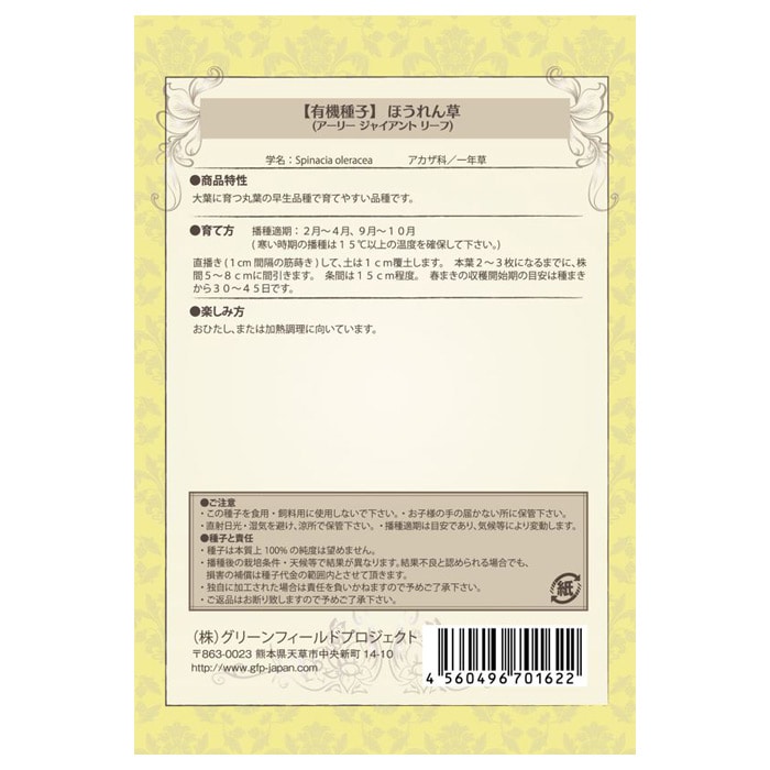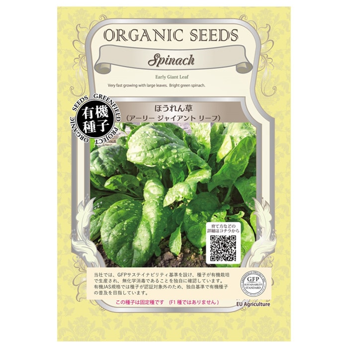 有機種子 ほうれん草 アーリージャイアンントリーフ