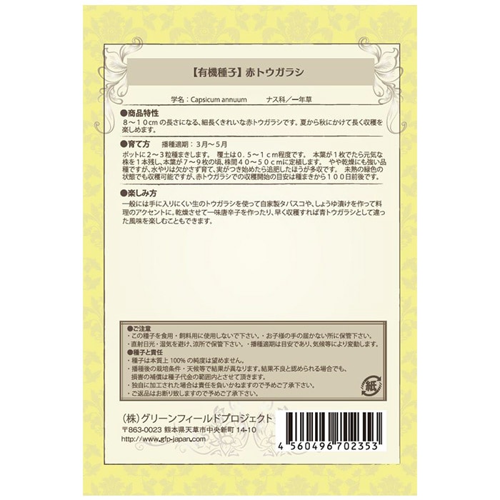 化学農薬・化学肥料なし、化学種子消毒なし、遺伝子組み換えなしの有機種子です。