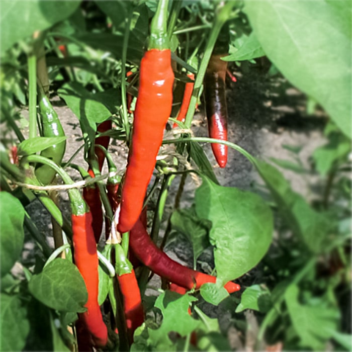 8~10cmの長さになる、細長くきれいな赤トウガラシです。夏から秋にかけて長く収穫を楽しめます。