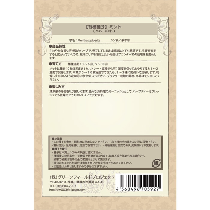 有機種子 ミント ペパーミント